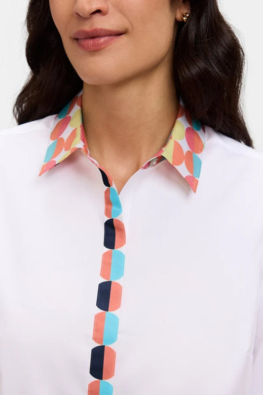FOXCROFT GEO CIRCLES LONG SLEEVE BLOUSE