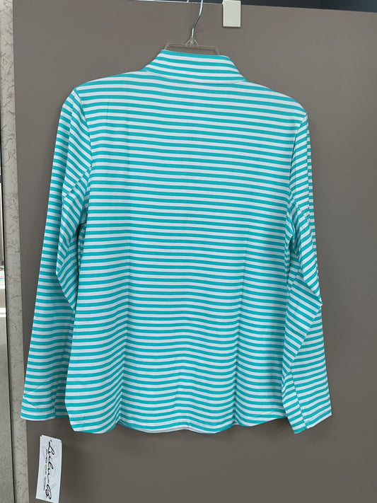 LU LU B TEAL/WHITE STRIPE QUARTER ZIP