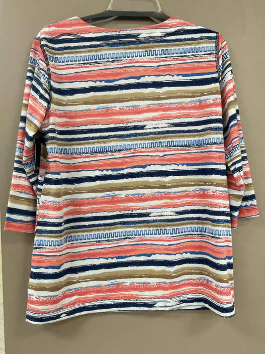 LINKS THREE QUARTER SLEEVE TOP IN BLUE, TAN & CORAL