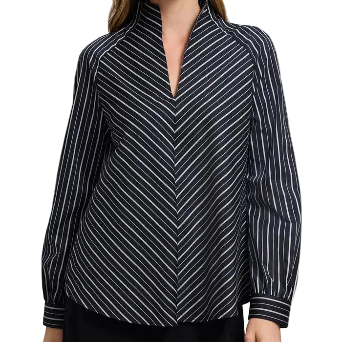 Sophisticated and modern, the Daphne Striped Popover Shirt is a timeless wardrobe essential with a contemporary twist. Designed with clean vertical and diagonal stripe detailing, this blouse elongates the silhouette while adding a touch of elegance. The popover style features a flattering split neckline, long sleeves with button cuffs, and a relaxed fit that drapes beautifully on the body.